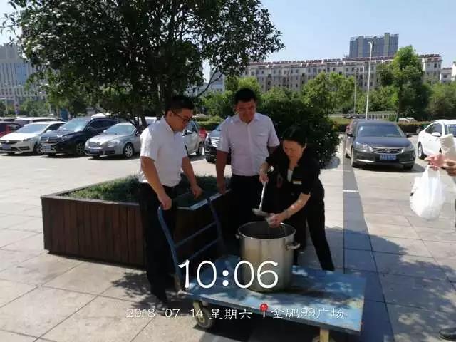 因此为表达对一线员工的问候与关怀,人事部经理缪巧丽、运营部经理闫梅、安保部经理阮强等人为坚持在内外场坚持高温工作的人员,送去冰爽的绿豆汤。慰问过程中,缪巧丽经理嘱咐员工既要做好本职工作,也要注意劳逸结合,让一线员工们在酷暑的夏天感受到了一丝舒心的凉意。