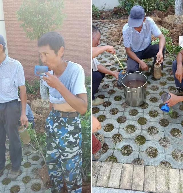 团膳部给党风廉政教育中心室外工作人员及办公人员送上新鲜可口的冰镇绿豆汤降温,提醒工作人员高温注意防暑!