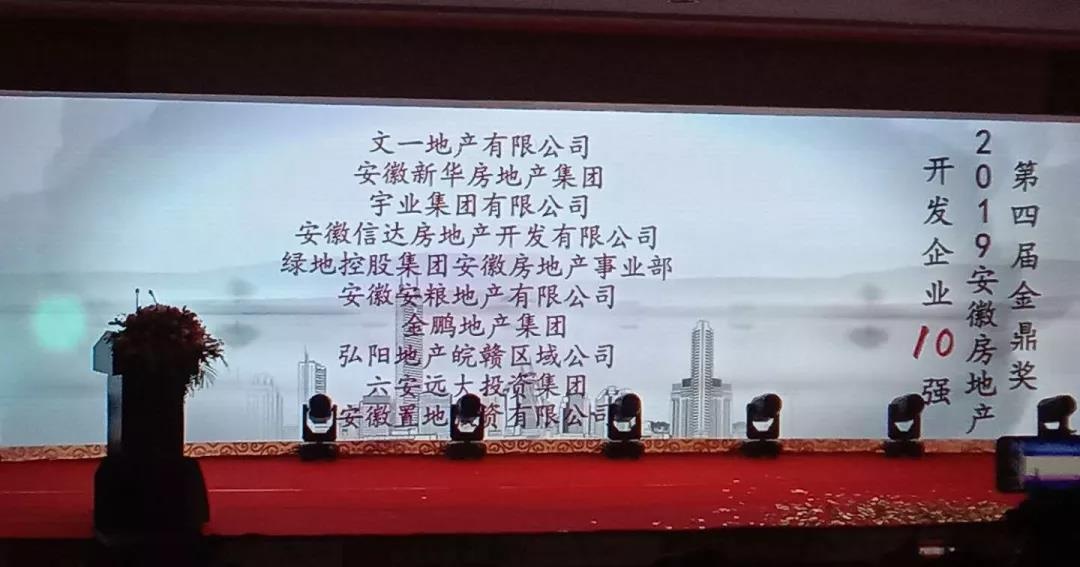 1月12日,由安徽省房地产研究会主办的第四届“金鼎奖”暨2019安徽房地产50强企业测评成果发布会在合肥举行,著名专家学者、政府领导及地产行业领袖参加了此次盛会,共同揭晓安徽地产50强榜单。