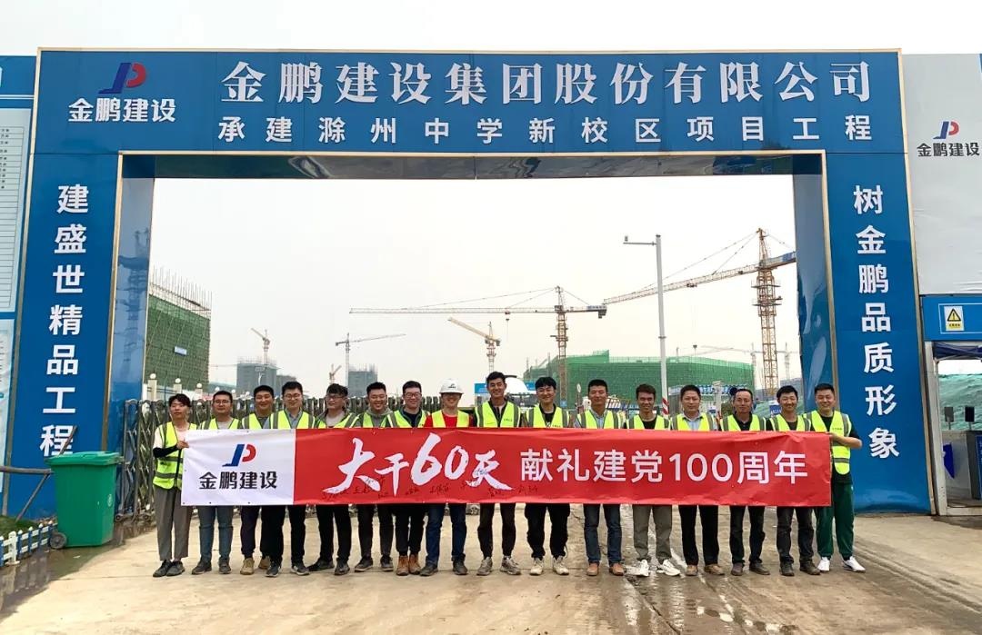 今年是“十四五”规划开局之年,也是中国共产党建党100周年。近日,金鹏开展“大干60天献礼建党100周年”专题活动,公司党员干部带领建设者们正攻坚克难,以强烈的责任感和使命感争时抢速、奋力拼搏,用滴滴汗水浇灌孕育“滁州中学新校区”,用优异的成绩向建党100周年献礼。