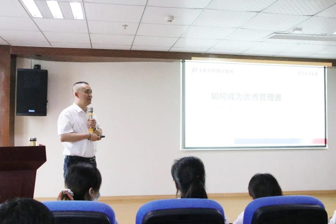 结合现场参会人员身份,金鹏祥和物业副总经理陈华朴因时制宜,从自身从业多年的物业管理经验入手,从管理的定义引入话题,着手讲解管理者和优秀管理者之间的差异,进而展开如何成为一名优秀管理者的思路和做法。思路、目标、格局、思考、沟通等五大要素缺一不可,陈华朴结合实际工作案例提供具体实施方案,同时针对一些管理上的误区,分条梳理,为管理者提供借鉴。管理不止于知,更在于行。陈总结合自身工作体会,分享从业感悟经验,在会学员皆连连点头,记录在册,学习气氛浓厚。