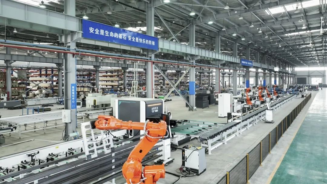 铝合金智能产线锯切中心、数控钻铣中心、数控冲床等高效设备进行有机连线,不仅解决了生产过程中物料流和信息流打通的问题,而且把原来以料车为载体的批量转运模式升级成了按照每一段型材的单件流,管控更加实时和精准,实现了柔性化生产模式,使得大规模定制化生产变得简单可行。