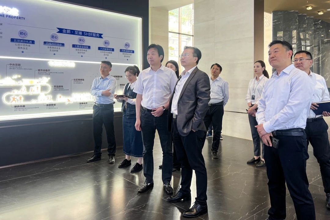 金鹏控股集团总裁孙元祥在陪同过程中表示,金鹏是安徽工业互联网协会唯一的建筑行业副会长单位,已构建起“智能设计、智能制造、智能建造、城市运营”四轮驱动的全产业链布局,并以“金鹏智建工业互联网平台”为底盘,逐步打通工程设计、采购、生产、销售、施工和运维的全生命周期,推动产业链上下游形成数字化协同效应。金鹏创新打造的云境项目,在全国率先运用“工业互联网+智能建造+金鹏5H好房”,通过平台赋能,筑牢一体化数据底座,强化从开发建设到维护使用的全方位服务,并将场景从好房子扩展到好小区、好社区,助力企业“好房子”标准体系完善和构建房地产发展新模式。