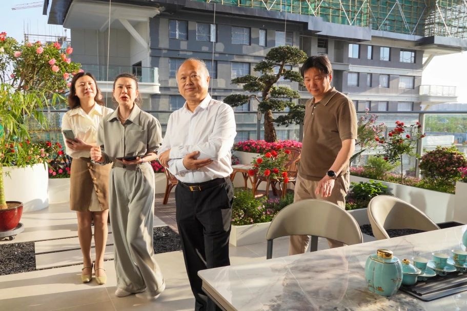 金鹏控股集团总裁孙元祥在陪同过程中介绍了金鹏产业发展、科技创新、智能化应用等情况。他表示,金鹏推动新型建筑工业化和智能建造融合发展,积极布局智能建造全产业链。其中,金鹏创新打造的云境项目在全国率先运用“工业互联网+智能建造+金鹏5H好房”,是集“美学家、绿色家、安全家、智慧家、舒适家”为一体的高品质住宅,集中体现了金鹏全产业链和智能建造全过程技术的应用。在云境项目今后的运维中,将继续以党建引领“红色物业”,提供“至臻服务”,推动服务品质迈向更高层次。