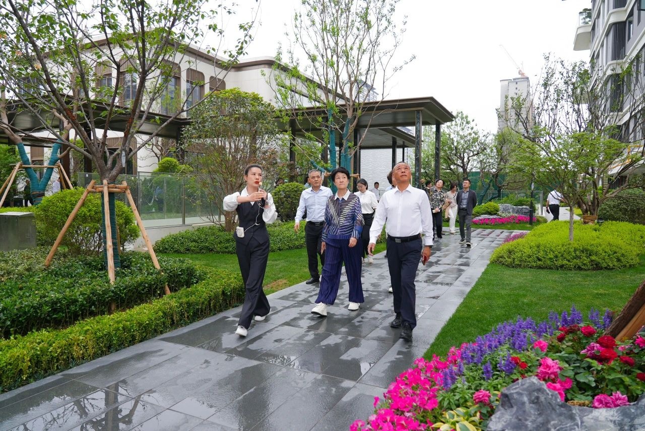 赵馨群等领导每到一处,都驻足观看、认真聆听,对金鹏云境项目的空中花园、景观设计、配套设施、智能化应用等印象深刻,给予金鹏高度认同和赞赏。赵馨群表示,金鹏深耕滁州,始终致力于改善老百姓的居住环境与生活品质。2025年全国两会首次将“建设安全、舒适、绿色、智慧的‘好房子’”写入政府工作报告,金鹏能够积极响应国家政策,率先推出绿色生态理念的第四代住宅,加快自身绿色化、智能化转型升级,为城市高质量发展贡献了一份力量。她勉力金鹏创新发展,为人民群众继续创造高品质生活空间,助力城市环境和功能品质再提升。