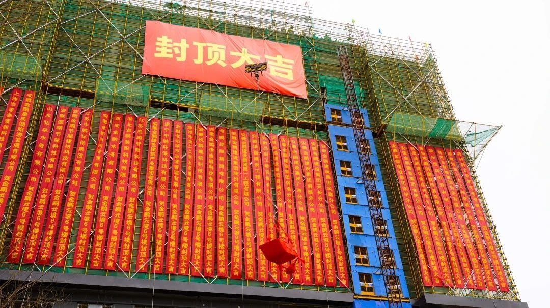 3月29日金鹏·云境6#迎来封顶,滁州人居正式步入4.0时代。金鹏控股集团董事长孙元武携金鹏建设、地产相关负责人及监理单位、项目一线人员共同参加仪式。