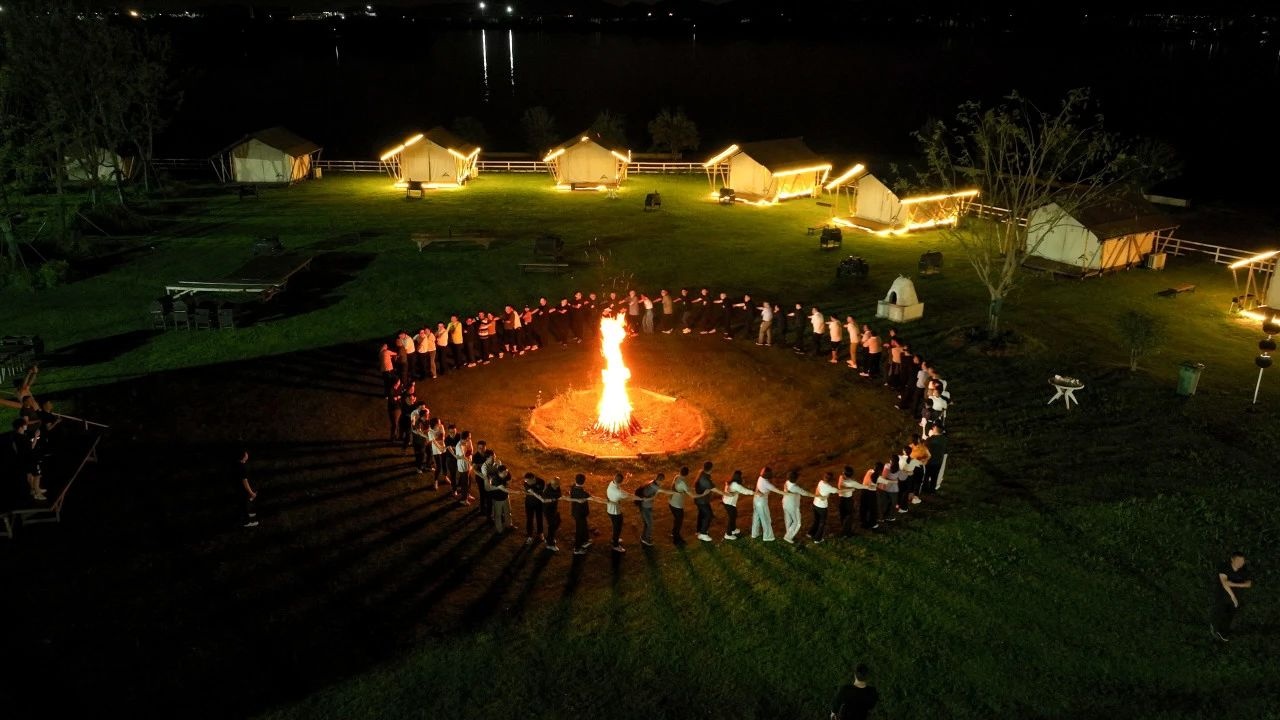 会后,参会人员在皇庆湖开展了一场既能放松身心又能增强凝聚力的团建之旅。拔河比赛、真人CS、骑马、卡丁船、皮划艇等活动精彩纷呈。晚间还举行了大锅灶厨艺比拼及篝火晚会。