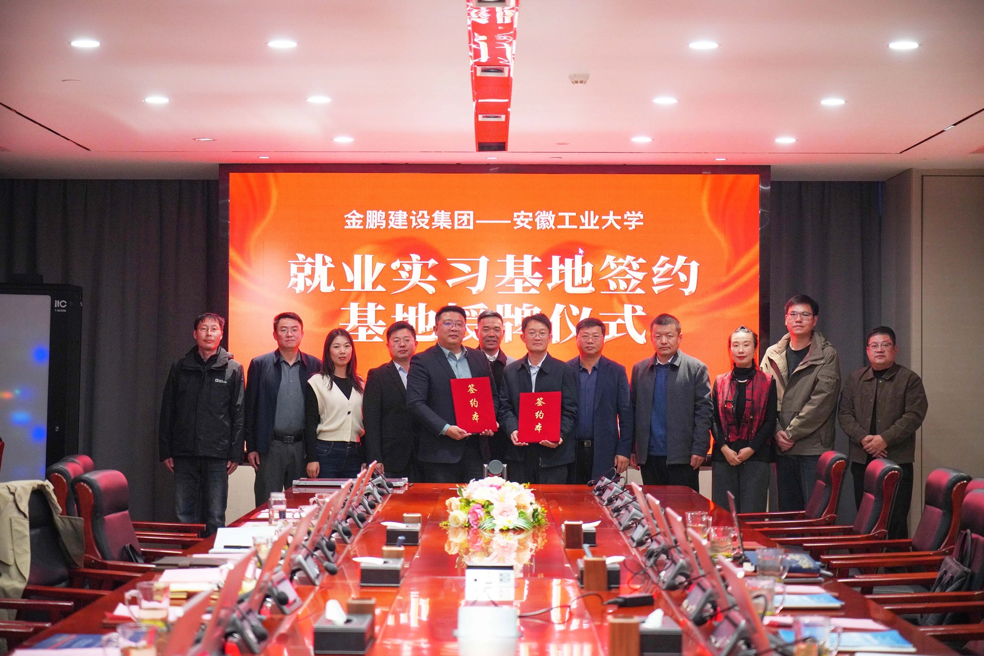 11月20日,金鹏建设集团与安徽工业大学在金鹏总部大楼签订人才培养与就业基地建设合作协议。安徽工业大学党委副书记王俊,建筑工程学院党委书记张虎,党委副书记、院长于峰,党委副书记、纪委书记、副院长王颖之,土木系副主任姚晓光莅临金鹏,金鹏控股集团副总裁陈礼兵,金鹏建设集团总裁郑冀东,产业研究院院长廖智强等高管热情接待。